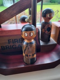The wooden fire engine holds 4 wooden figurines, which includes